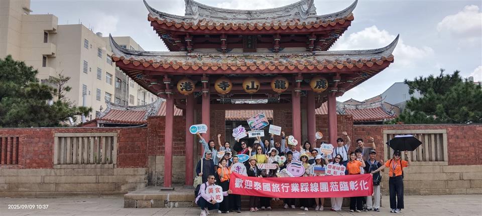 9月9日縣府特別邀請泰國26家旅行業者及航空業者,包括大型綜合旅行社、文化深度導向、新創與數位行銷及高端旅遊等多元型態的旅行社。踩線團除走訪鹿港老街、龍山寺、桂花巷藝術村、天后宮及民俗文物館,也搭乘特色三輪車遊覽,深入感受鹿港小鎮的文化底蘊與旅遊魅力,並與本縣旅遊產業代表辦理實質媒合會進行交流。