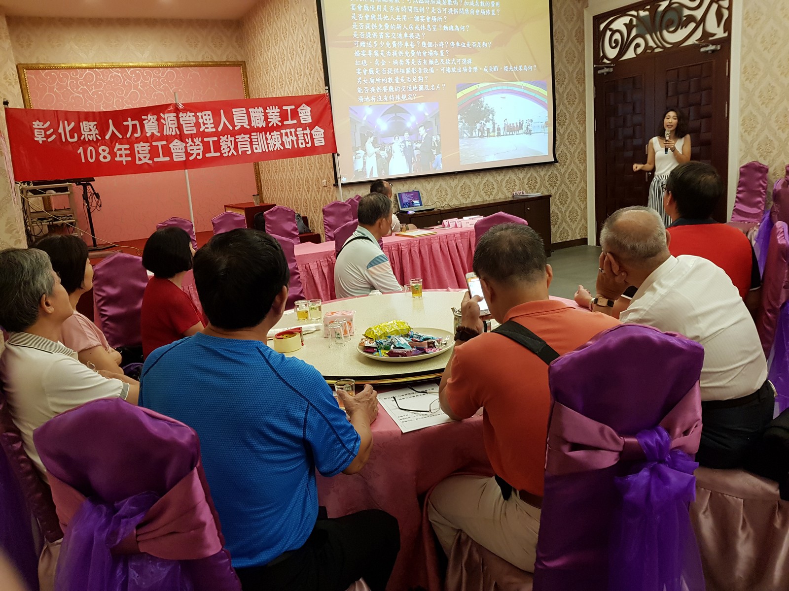 彰化縣人力資源管理人員職業工會,於108年8月3日假員林市大家來婚宴會館辦理第一屆第三次會員大會暨勞工教育訓練辦理完竣,與會貴賓有彰化縣政府黃智裕秘書、立法委員蕭景田服務處江世鐘秘書、員林市市民代表陳文明代表、員林市公所財政課魏瑞文課長、新竹縣職業總工會歐陽文貞理事長、 中華民國驗光配鏡職業工會全國聯合會陳錫評理事長、 新台灣國策智庫研究部張人傑總召集人、台灣淺山產業旅遊協會鍾起岱理事長、彰化縣西服業職業工會康長源副理事長、南投縣新住民成長協會陳麗雙理事長、台中市婚喪喜慶司儀人員職業工會劉南剛副理事長等,受邀貴賓有政府部門、工會、協會等貴賓參與,與會貴賓都是理事長多年好友,上半段為勞工教育訓練,第一堂課由自助婚紗工作室負責人陳靜妏老師進行幸福婚紗講座,完美的講座分享,台下掌聲不間斷。第二堂課由工會賴奇旻理事長,講授工會組織發展,透過各工會經驗交流下,結合理論與實務分享,架構出工會體系未來可發展短中長期推進計畫。下半段為工會第一屆第三次會員大會,參加之會員亦給予工會多方建議與合作方案,希望未來可結合政府單位進行職業訓練課程規劃與運作。