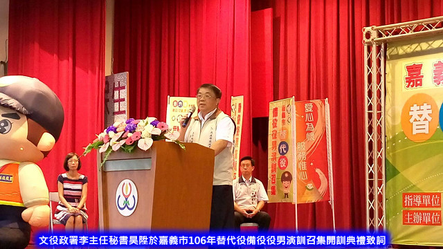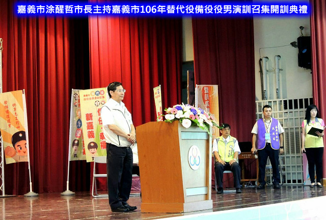 【記者于郁金/嘉義報導】我國位處環太平洋地震帶,且因全球極端氣候影響致災害頻傳,為有效運用替代役役男人力支援災害防救任務,8月25日假嘉義市民生國民中學,舉行106年替代役備役役男演訓召集暨現役役男災害防救演訓,由內政部役政署李主任秘書昊陞及嘉義市涂醒哲市長共同主持開訓典禮,場面隆重而氣氛熱絡。