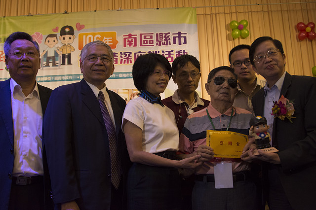 邱昌嶽說,這一次活動也特別安排於823砲戰被砲彈炸傷,造成全盲(聾)及癱瘓,但仍無怨無悔的86歲弟兄林德祿,代表南區弟兄接受秋節慰問金(品)。林德祿為國負傷數十年來的身心煎熬、家屬不離不棄的心路歷程,以及役男陳俊評陪伴林員就醫及關懷,這些動人事蹟已經由中正大學教授王瓊玲撰寫,並出版《待宵花-阿祿叔的八二三》一書。