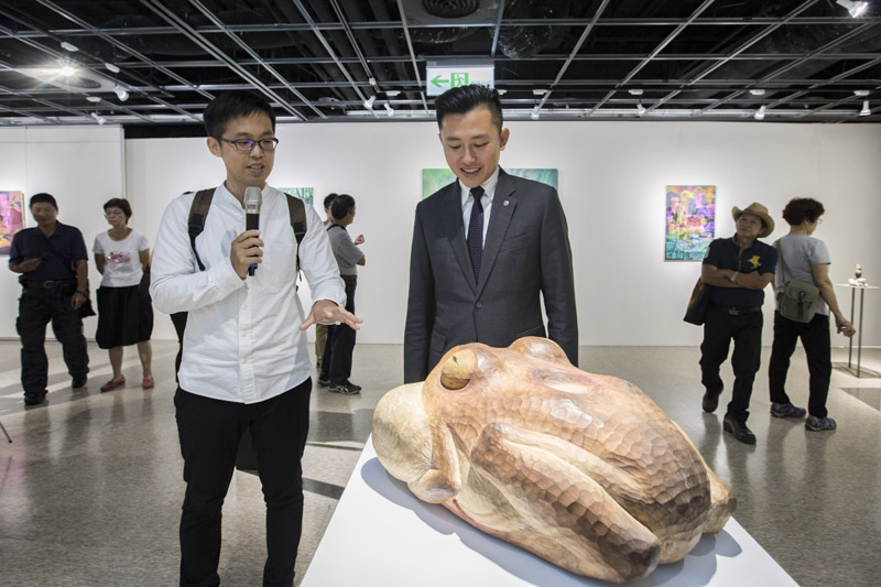 第二展覽室新銳藝術家作品,邀請林煌彥與黃玫玲演繹「磨情幻樣」的複合媒材展;第三展覽室特別跨海邀請澳門視覺藝術產業協會,以「微元素」為題,由七位藝術家參與,有插畫、油彩、攝影、水墨作品,特別是吳少英2014年創作的AR互動影像藝術「生」,藉由APP,可了解藝術家創作過程中,墨彩的流動韻致。