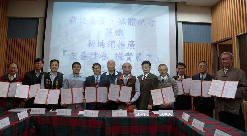 【本報訊】新竹縣新埔鎮公所16日邀請農業領域的產、官、學、研各界,在新埔鎮遊客中心簽署「友善耕養誠實農業」策略聯盟合作意向書,宣告新埔鎮的農友將在邀請各方專業共同指導下,從事友善土地耕養,恢復土地生機,讓產物自然安全,耕養者有保障,消費者安心,打造新埔友善農業發展願景。