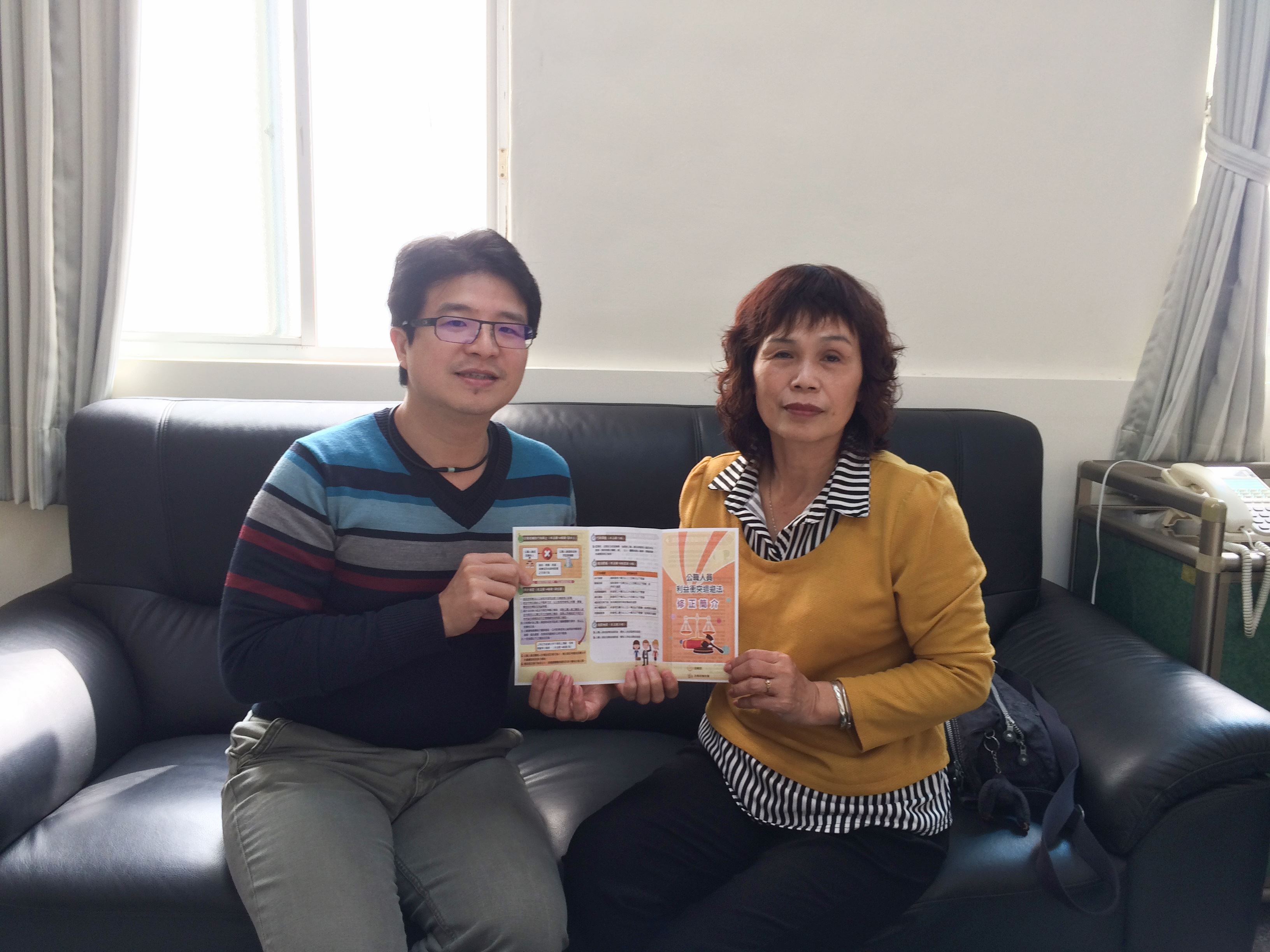 【本報訊】為強化民意代表對於公職人員利益衝突迴避法修正內容的認識,新竹縣芎林鄉公所政風室繼去年首創鄉公所對候選人進行反賄選宣導後,再一次創新作為,推出「專人到宅宣導」服務,以一對一方式對鄉內鄉民代表進行相關宣導,此一方式受到鄉民代表一致好評,讚聲連連。