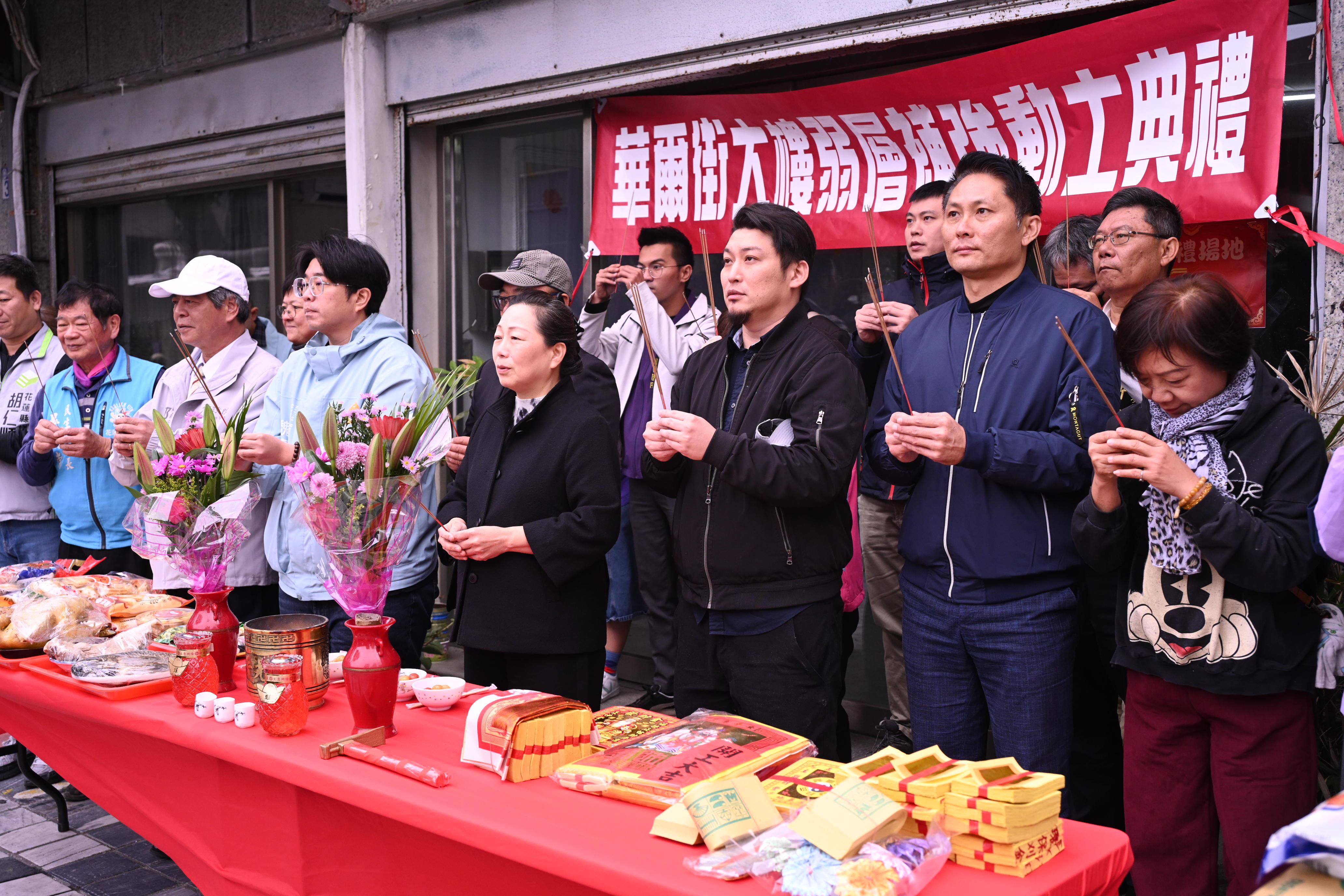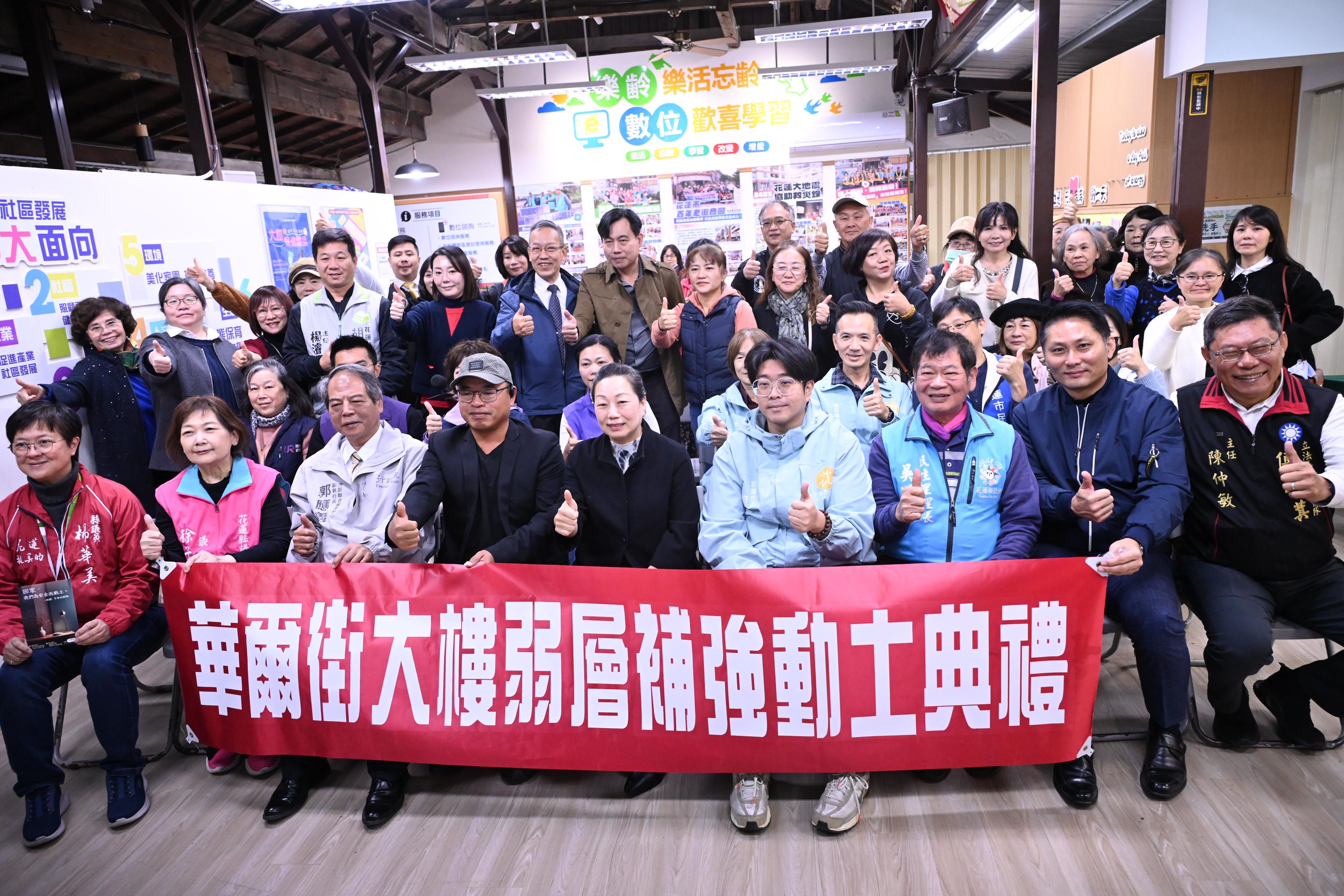 出席貴賓包括行政院東部聯合服務中心副執行長郭應義、花蓮縣議員徐子芳、魏嘉賢、吳東昇、楊華美,及花蓮市長魏嘉彥等人。住戶代表致詞表示,歷經等待與各界協助,補強啟動深感感恩,期盼工程圓滿完成,重返溫暖家園。