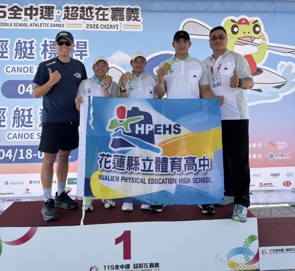輕艇項目同樣表現亮眼。花蓮體中陳威智於高男組輕艇競速500公尺單人C艇決賽中,以1分59秒22的優異成績奪得金牌,展現強大爆發力與穩定節奏控制,成功摘下個人本屆首金。高女組500公尺雙人C艇方面,吳煥棠與吳暐婷攜手出擊,兩人默契十足、節奏一致,在水面上破浪前行,最終以2分18秒75勇奪金牌,其中吳煥棠本屆已累計2金1銀,表現十分亮眼。國女組方面,平和國中蘇雪兒與蘇雪柔亦奮力拼戰,勇奪銅牌。
