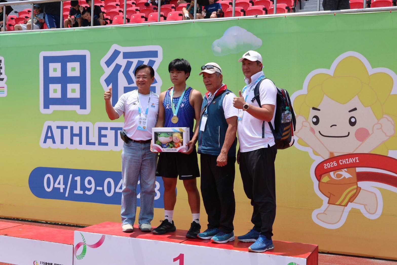田徑賽場方面,光復國中田佳恩在國男組標槍項目中,以56公尺53的成績勇奪田徑項目上首面金牌,並創下大會紀錄,成績斐然。這面金牌背後更蘊含感人故事,光復國中曾遭馬太鞍水災重創,校舍與訓練器材幾近全毀,並在無固定場地情況下克難訓練。儘管環境艱困,選手與教練仍堅持不懈,最終在全中運開花結果。教練陳緯皓與鄭萬富表示,田佳恩穩定的訓練態度與堅持是奪金關鍵,這面金牌也象徵團隊在逆境中的重生與希望。