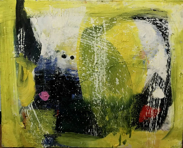 其創作油畫的部分是高彩原色的恣意揮灑,加上 「得意忘形」的東方書寫線條,畫出看不見的內心風景,綠色隧道的私密心情,意在筆先的筆劃與線條,記錄著生命不可磨滅的情懷過程,當下我就是藝術,藝術即我,飛船載的不是家當,是星空下的希望與夢想,民間傳統匠師精湛的技藝,加上當代藝術的靈魂,碰撞出兩個世代傳統與當代的火花。