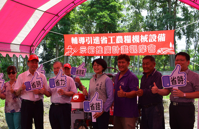 【記者于郁金/綜合報導】為紓緩農業缺工問題,農糧署自本(106)年起補助農友購置新型省工農機,以減輕農友從事農業生產之負擔。南區分署表示,轄內鳳山區有機米產銷第1班,透過轄區鳳山農會向農糧署申請補助購置新型乘坐式水田除草機,經邀集相關單位辦理實地測試結果,符合國內農民之作業模式與耕作習慣,甚具省工效益,為讓廣大之水稻種植農民見識該機械之除草效益,該分署於8月16日上午10時,在高雄市旗山區旗尾段農田,舉辦示範推廣觀摩會,現場包括立委林岱樺、鳳山區農會薛理事長、歐總幹事、潘常務監事、高雄區農業改良場等,以及以有機、友善耕種之稻農或與生產團體參加,田區湧進眾多農友,個個都很好奇,在參觀現場操作說明後,每個人都對此機器確能節省許多人力,稱讚不已!在目前農村雇工不便之際,對解決農業缺工問題,實在是一大福音。