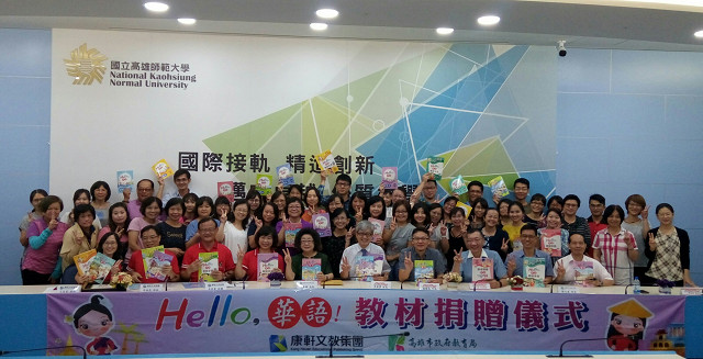 【記者于郁金/高雄報導】在國立高雄師範大學華語文教學研究所所長鍾鎮城促成下,康軒文教集團捐贈高雄市教育局《Hello,華語!》教材100套,於8月23日上午10時30分,假國立高雄師範大學行政大樓10樓國際會議廳舉行贈書儀式,由國立高雄師範大學校長吳連賞、高雄市教育局長范巽綠、康軒文教集團副總吳惠潔共同主持;高雄市教育局特別頒發感謝狀感謝康軒文教集團,對於新住民跨國銜轉學生華語教育之援助,期能達到抛磚引玉的作用,使高雄市華語教學能獲得更多民間資源挹注。