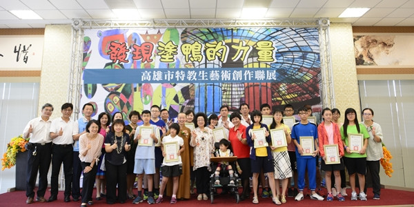 高雄市特教生藝術創作聯展第3度在佛陀紀念館展出,以「發現塗鴉的力量」為主題,展出楠梓特殊學校、高雄啟智學校等17校、25名身心障礙學生的40餘作品,色彩搶眼,媒材繁複,風格多元,除了水彩、油畫,今年出現多幅動漫風、版畫風及禪繞畫作品,特教生想像力、創造力之豐沛,再度讓人驚艷。