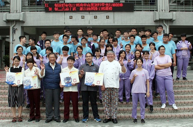【記者于郁金/高雄報導】佛光山普門中學餐飲管理科學生羅苡慈、呂子誠,在106學年度全國高級中等學校商業類學生技藝競賽大放異彩,在194所學校、1062名技藝頂尖的高職生中脫穎而出,分別獲得烘焙、中餐烹飪優勝,為普中學生歷年參賽最佳成績;11月23日獲獎消息傳來,全校歡欣不已,普中校長蔡國權更帶領全校學生放鞭炮,歡喜迎接2名好手歸來。