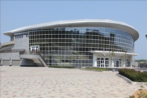 根據維基百科資料指出,金湖綜合體育館,位於金門縣金湖鎮,又稱金門巨蛋或金門小巨蛋,開工日期2010年3月26日,在8月初完工,8月4日開放使用,建設總價逾6億。金湖綜合體育館共有兩座主建築,所以合稱「大小巨蛋」,內設有符合國際規定的籃球場和羽球場。根據設計單位蔡達寬建築師事務所設計方向,基於環保概念、節能考量,將力求原地形地貌的維持、建築量體低調化。金湖鎮綜合體育館共分為A館和B館,A館可容納3500人,B館可容納566人,並有伸縮看台、舞蹈教室、健身中心、會議室、桌球室、跆拳道、柔道等訓練空間規劃。(圖引用金湖綜合體育館官網)