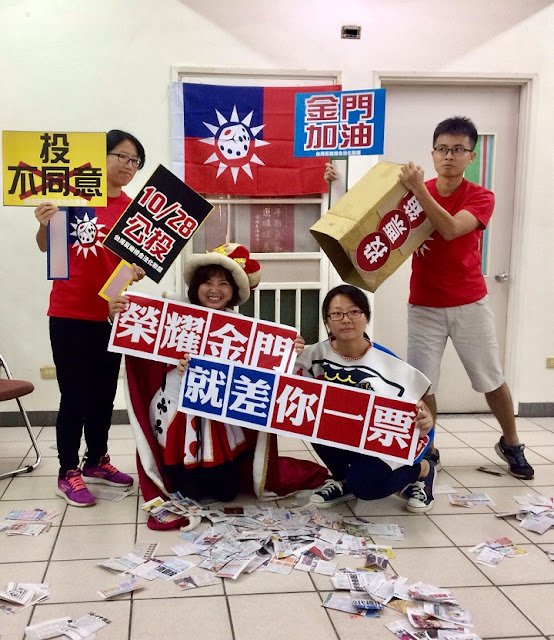 反賭聯盟也以「Casino女王來金門」的行動劇,生動演出以「不同意」票將Casino女王攆出金門,藉此呼籲金門鄉親務必10月28日出門投「不同意」票。