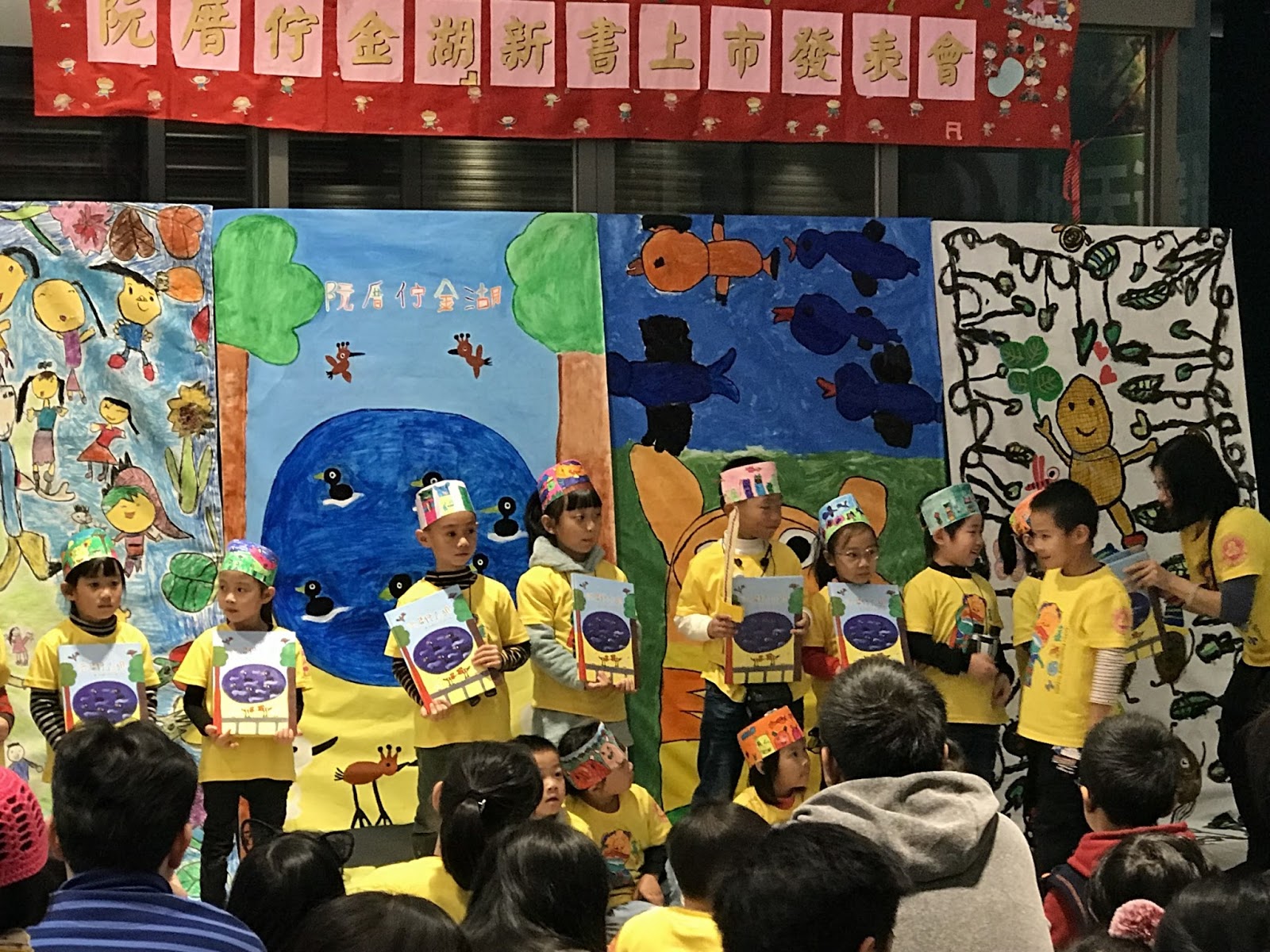 校方表示,因校舍暫遷的地點緊鄰太湖,讓我們有機會接觸了太湖周邊風光景物,經團隊教師腦力激盪,共同研討發想,於是我們發展出以太湖的生態與人文為主軸的課程主題,透過對太湖周遭環境認識,我們一步一腳印經過討論、構圖、上色的過程,一起將手繪圖一幅一幅的躍然紙上,共同完成了我們的特色課程縮影之夢想繪本—《阮厝佇金湖》。