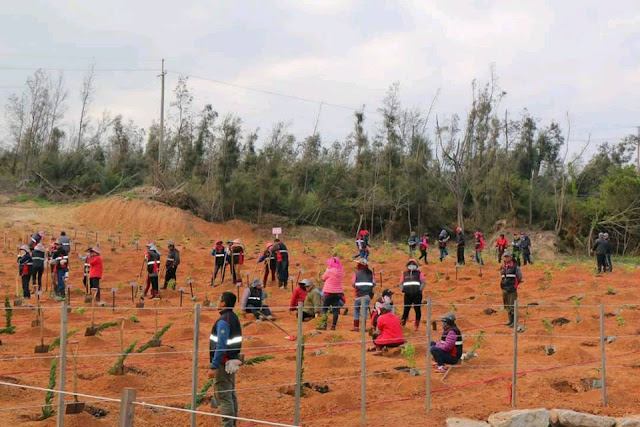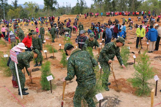 【記者于郁金/金門報導】「十年樹木,百年樹人」,107年植樹節活動9日在南石滬公園旁的料羅林區盛大舉辦,現場超過上千人共襄盛舉。林務所表示,本次植樹節活動場地為搶救106年10月火燒埔時所開闢的防火巷,當時為求搶救時效,移除了原有植被,也有效阻止了林火蔓延,所以期望透過本次植樹活動把樹種回來,也象徵著火災後的重建與新生。