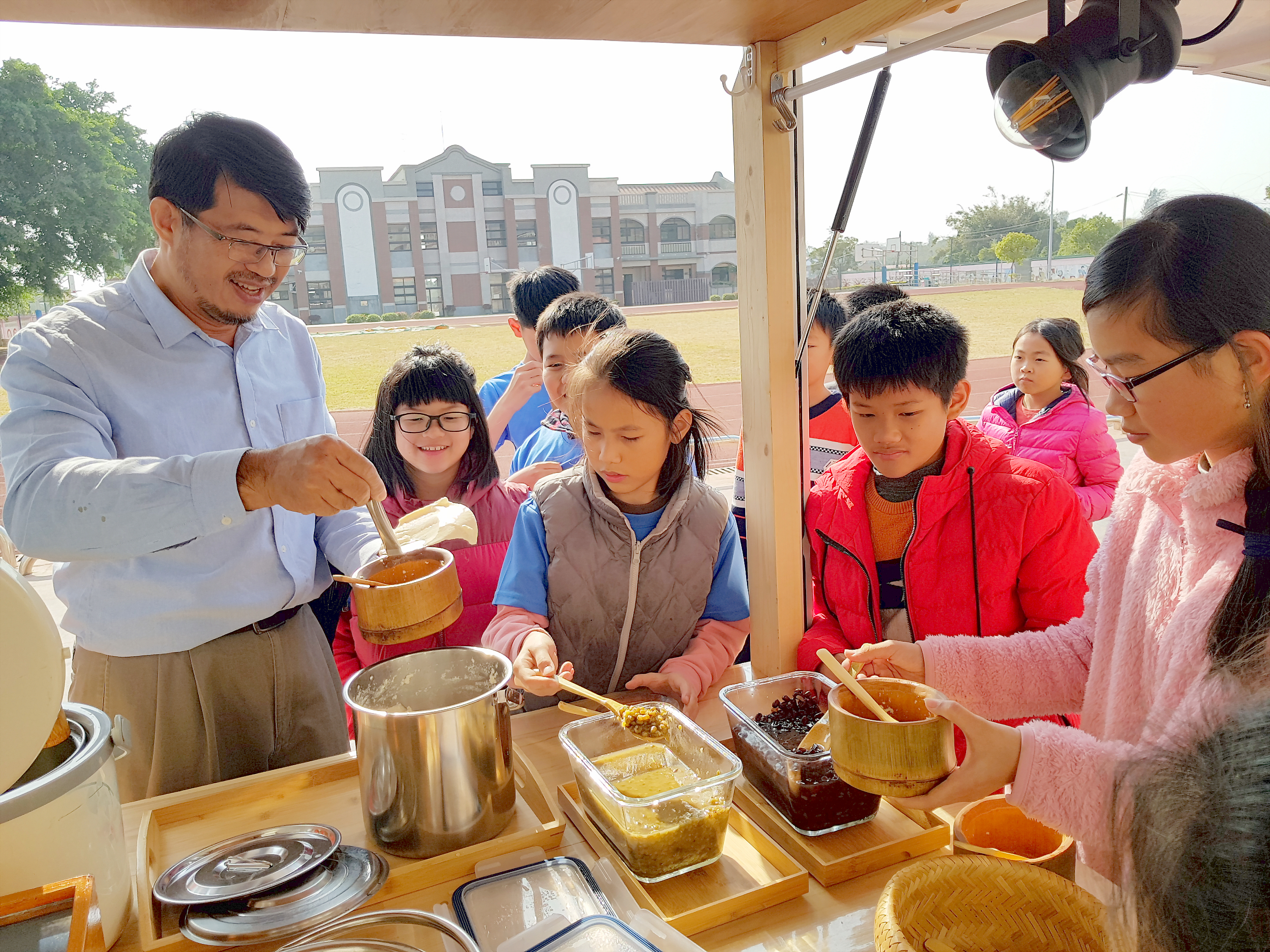 「用畫面說故事」是最直接、最能觸動人心的方式,何明瑞導演將「導演的豆花車」駛進古寧國小,透過豆花成長過程介紹、有機豆類的講究,體驗運用竹山的竹碗、木匙品嚐豆花的天然飲食文化,比擬人如黃豆般經過一道道過程而成為豆花,你賦予給它什麼材料,它就會成為「豆花」,藉由品味生活美食與周遭事物,讓學童對「美」重新定義。