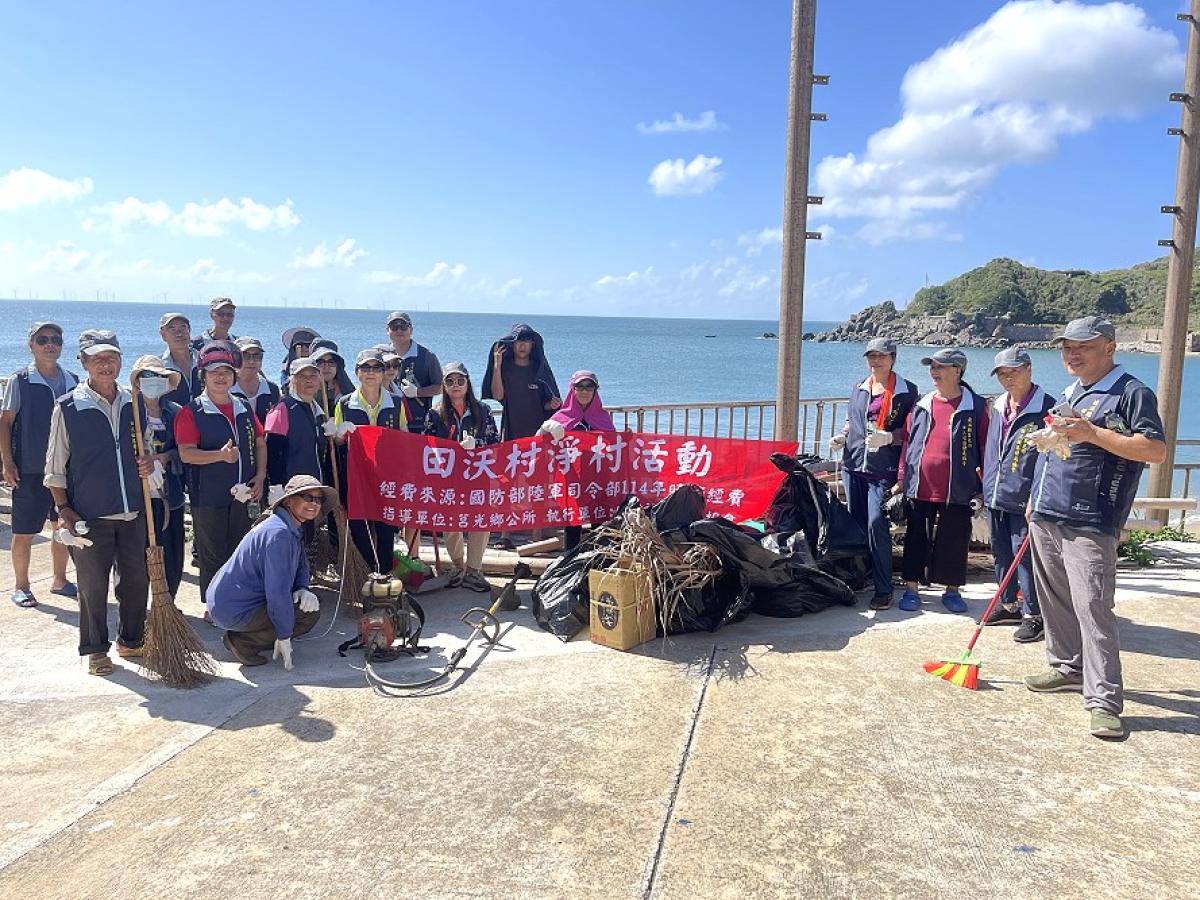 由莒光鄉公所指導,國防部陸軍司令部睦鄰經費補助,莒光鄉田澳社區發展協會辦理田澳村淨村活動, 上午9時在田澳老人文康中心前集合,做完工作分配後隨即分組出發,大家各司所職,頂著大太陽分工合作,鋤草、掃地、清理廢棄物等,把自己家周遭環境清理乾淨,大大提升居住品質。