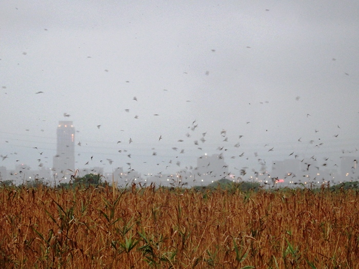 滿天密密麻麻的小黑影構成五股溼地夏季最壯觀的景象