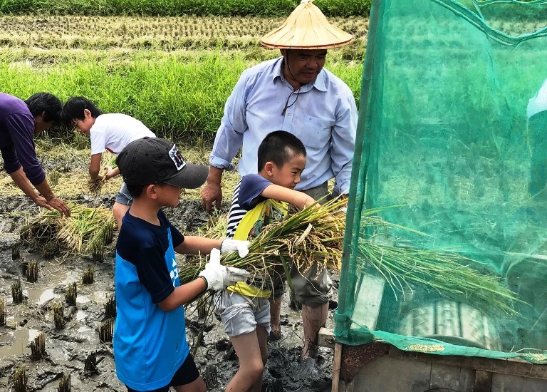 為使小朋友們能更了解食材原貌,並體驗農夫辛苦耕作以及懂得盤中粒粒皆辛苦的惜食觀念,今年整合當地約2分地的稻田讓小朋友體驗收割的樂趣,同時在農業局與雙溪區公所輔導下辦理「秋收稻穗慶豐年」,讓50多位小朋友體驗割稻。小朋友們看到自己辛苦種下的秧苗,經過4個月長出黃金般的稻穗,各個都雀躍不已,即使在烈日之下,也顧不得衣服弄髒趕緊紛紛下田割稻,雖然每個人滿臉汗珠,但在收割完看著手裡的成果,小農夫們都露出滿足的笑容,並且拿著自己收割的稻米拍照,留下在學過程中美好的回憶。