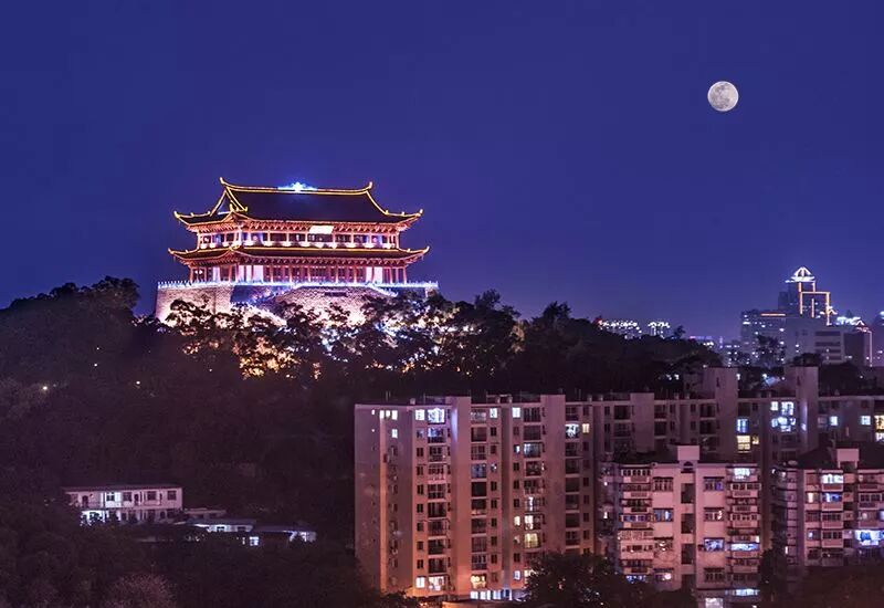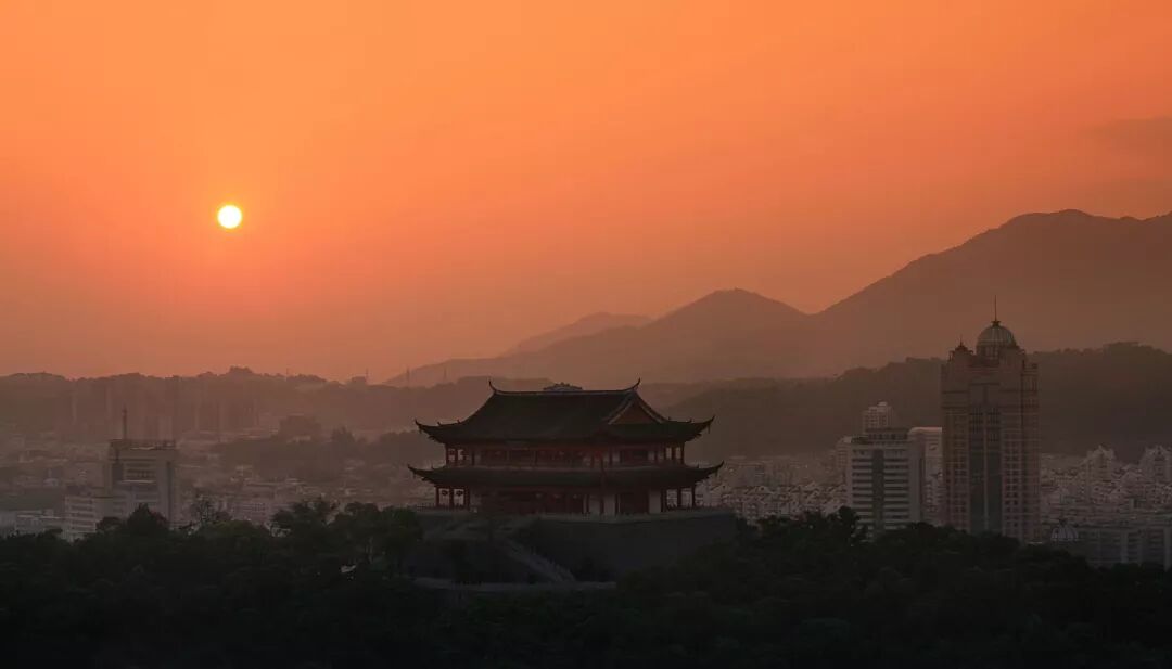每年颱風來臨的前夕,手機裡的預警信息反復響起,動車飛機停運,超市裡的麵包泡麵都被搶購一空,人心惶惶之時,這座屹立於屏山之巔的建築,總能給人足夠的安全感。昨晚,在超強颱風瑪莉亞來臨的前夜,鎮海樓的燈光再次亮起,人們在微博上紛紛轉發,“鎮海樓發出佛光,可以一戰了。“