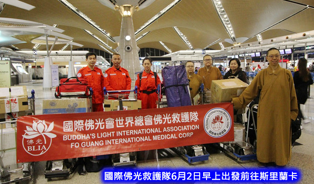 「人溺己溺,情義相隨」,馬來西亞國際佛光救護隊6月2日早上出發前往斯里蘭卡救災,領隊如行法師、無國界醫生陳少萱、陳素麗護士長、3位救護人員、1位記者,共7位大馬人代表出隊;斯里蘭卡當地則有覺門法師、3位法師及義工約20人共同參與這次人道關懷。
