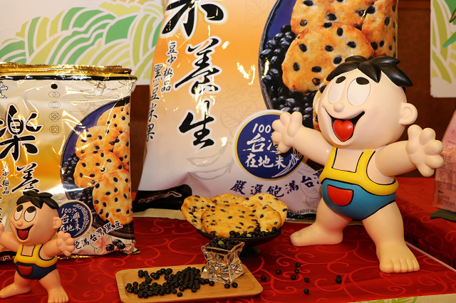 農糧署表示,黑豆米果由該署 輔導農民、農民團體與企業合作協力完成,透過雲林縣謝明拴及蔡財興等2位黑豆專業契作農戶,生產供應精選之臺南3號青仁黑豆,經雲林縣四湖雜糧生產合作社反覆試驗原料含水率及焙製溫度等參數,採取浸泡、蒸煮、乾燥等繁複工序,產製精品蒸煮黑豆,再由旺旺集團-宜蘭食品公司以整顆黑豆揉入米胚之創新技術,讓米果呈現整顆黑豆原貌,導入原料完全利用概念;黑豆米果之生產,從原料媒合、代工模式建立、產品開發至通路拓展,串聯產製銷價值鏈,建立農民、農民團體及企業間合作模式,可加速國產雜糧之推動,為生產者及消費者帶來福利。