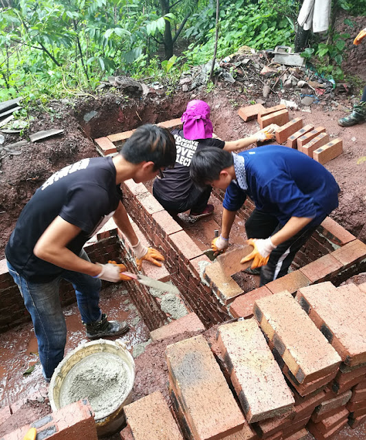 他們珍惜有限時間,認真地挖土坑、搬磚頭、拌沙灰、砌磚、壘牆,陸續完成一間又一間具有遮蔽門,又可製造出農地自然肥料的蹲式廁所;統計從7月5號到7月14日10天裡,他們為當地村民興建10座「三格式」生態環保型廁所,提供了乾淨與便利的如廁空間。