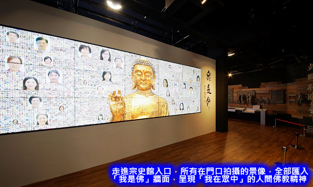 除了豐富圖文史料,宗史館也備有先進的互動科技,民眾可以通過大門的攝影機,將自己的照片投放在「我是佛」照片牆,千千萬萬張的圖像最終匯成佛光大佛,以人文科技帶出星雲大師提倡人人要直下承擔「我是佛」以及「我在眾中」的思想意涵。