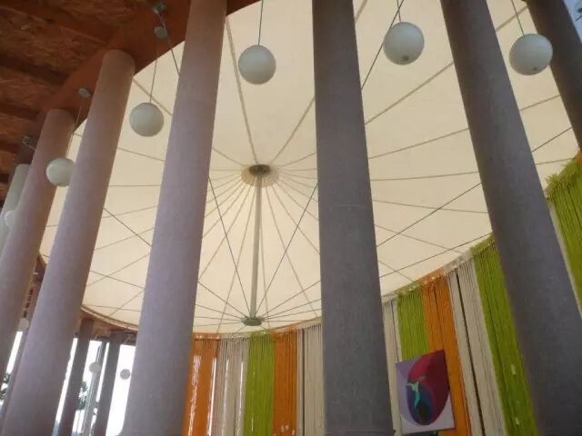 圍繞紙教堂,還設立了生態村的生態文化見學園區。當地村民與遊客在此除了觀景,參與活動,還可以交流、購物與食宿——這其實就是個經過昇華的整個生態村的社區中心和遊客中心。