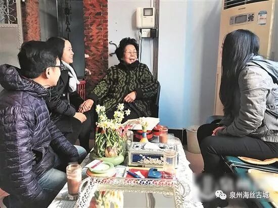 談話在愉快和溫暖中進行。李佰佳老人的一生是波折而勵志的,曾經,劉勝裕總行的生意在泉州首屈一指,而同樣富甲一方的李家的李佰佳當年嫁給了劉家的三少爺,夫妻倆恩愛、拼搏,將家族生意打理得更上一層,並生下兩子三女。然而,所有的幸福在她39歲那年打碎了,上世紀六七十年代,因社會歷史原因,家族的產業都沒了,此時,丈夫又不幸去世。李佰佳沒有怨天尤人,也不接受社會的任何救助,她選擇靠自己養育孩子們。後來,她帶著5個孩子投奔香港親戚,將5個孩子培養成有出息的人。“現在,我的孩子、我的親戚們都在賺錢,就我在花錢,我是'老闆娘'。”李佰佳老人風趣地說。提起過去經歷的苦難,李佰佳老人淡然;對於現在的生活,她說:“感謝偉大的祖國,讓我在這個年齡,還能感受到生活的各種美好。”