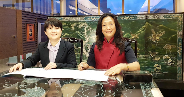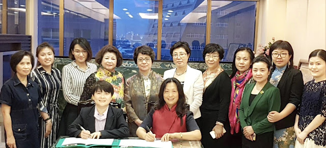 3月30日的合作協議書簽署儀式,為配合該團拜會功文文教基金會之時段,於當日下午17時30分假該會會議室舉行,「北京京地人和文化藝術發展公司」由王水霞董事長代表,台方婦菁「兩岸女性創業發展中心」則由福運集團公司蕭麗珠董事長代表簽約,開啟台京雙方合作,圓滿達陣。