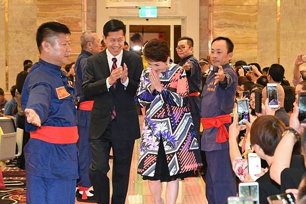 晚宴也進行了精彩的演出,如「雙管大師」蕭季慧的雙管揮毫,唐氏症兒童的鼓藝表演,中正高中學生進行的「大旗」與「武術」演出超吸晴;活動也邀請到洪門高級顧問、香港中華文化副主席王少秋,演唱「京劇」與「梨花頌」,有如將時空帶到百年前。並對所有貴賓進行迎風接駕的重要儀式。