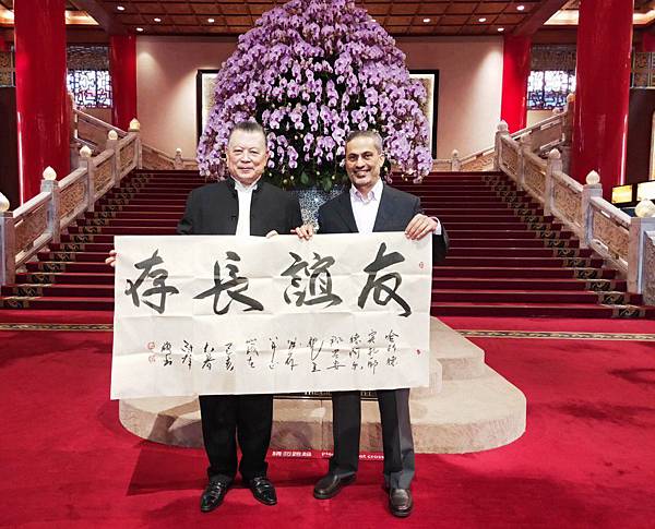 ●贈送名家顧冠群墨寶作品「友誼長存」一幅給親王, 劉會進代表全球洪門聯盟表達歡迎親王親臨美麗寶島,也期日後能與親王在全球企業擴展佈局合作無間,使洪門維新企業化、國際化進程更能順利達標。