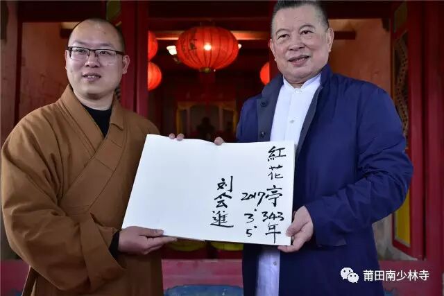 【本報訊】2017年3月5日,全球洪門聯盟劉會進總會長一行在中華媽祖文化交流協會常務副會長、莆田市人大常委會原主任林國良、荔城區副區長許秀霞的陪同下參訪莆田南少林寺,受到南少林寺方丈空性大和尚的熱情接待。