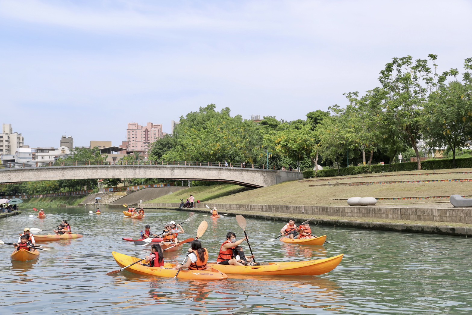 [本報訊]迎接清涼夏日,今(12)、明兩日及7月19、20日在大里康橋水岸公園舉辦「114年運動i台灣2.0計畫-水上嘉年華」活動,開放市民朋友免費體驗獨木舟,吸引眾多大小朋友踴躍報名、熱情參與。台中市政府運動局長游志祥代表市長盧秀燕出席開幕典禮,感謝台中市體育總會輕艇委員會辦理為期四天的水上體驗活動,讓市民在城市裡就能享受划行於水面上的清涼快感。