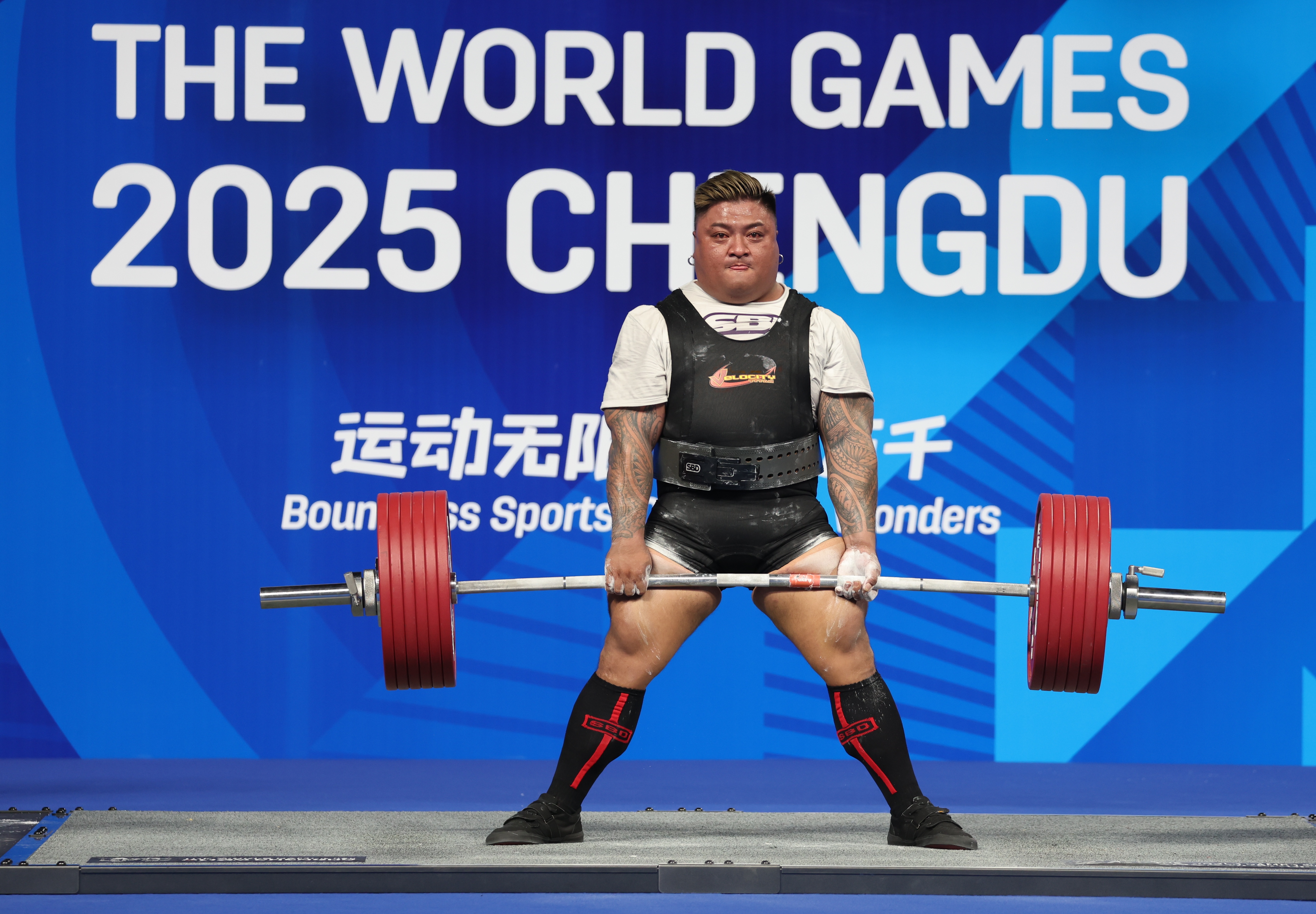 [本報訊]台中健兒於國際體壇再傳捷報!台中健力選手楊森在成都世運會展現超強實力,今(17)日在健力男子裝備超重量級登場,他在蹲舉項目一舉舉出453.5公斤,再度刷新世界紀錄,臥舉和硬舉則各達332.5公斤,三項總和1118.5公斤,再次為國拿下金牌。市府運動局長游志祥代表市長盧秀燕表達祝賀與感謝,感謝楊森在國際賽場上,讓世界看見台灣,也看見台中。