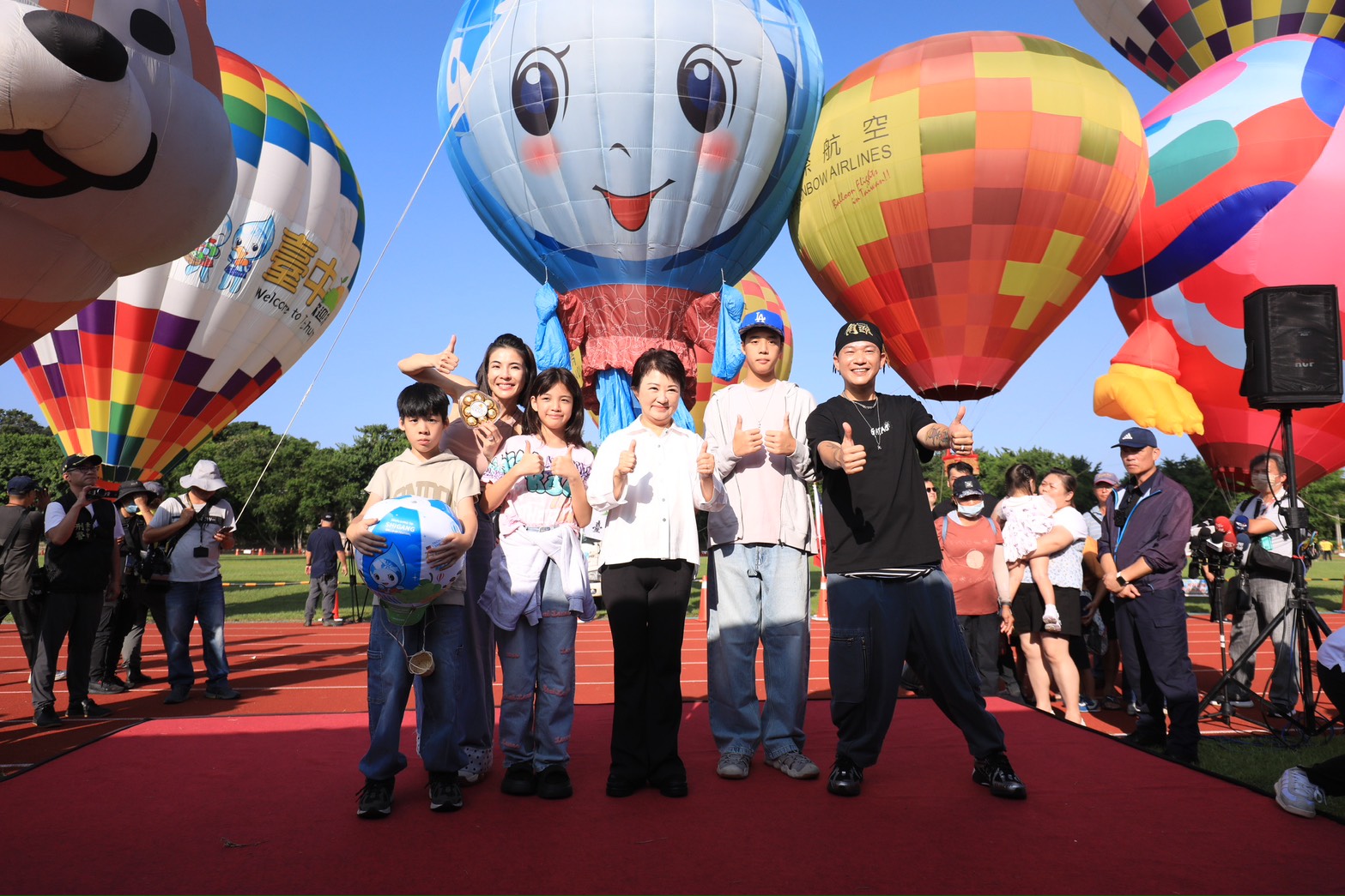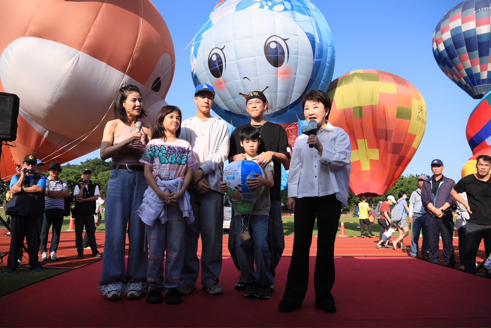 [本報訊]眾所期待的「台中石岡熱氣球嘉年華」今(29)日起至8月31日在土牛運動公園熱鬧登場,共有來自日本愛媛縣的吉祥物「蜜柑狗狗」及石岡在地吉祥物「水滴寶寶」等15顆繽紛熱氣球輪番升空,並搭配煙火秀、音樂演出與光雕噴火秀,帶來繽紛絢麗的視聽饗宴。台中市長盧秀燕今早更與舉家遷入票選全台最幸福宜居台中的模範夫妻阿Ben、徐小可率先搭乘熱氣球,並熱情邀全國民眾造訪石岡,體驗「好吃、好看、好玩、好住」的山城魅力。
