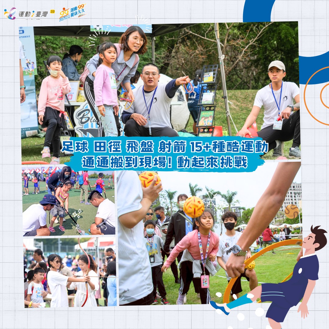 運動局表示,活動現場將規劃多樣運動體驗與親子闖關遊戲,涵蓋足球、籃球、擊劍、射箭、籐球、合球、袋棍球、匹克球、滑步車、法式滾球、定向越野與美式足球等十餘項目,適合不同年齡層共同參與。針對學齡前兒童,更設計「小小運動員闖關趣」,透過敏捷、平衡與協調遊戲培養基礎運動能力,讓運動向下扎根。同時,現場還有趣味闖關兌換贈品、行動餐車、體適能檢測及專業級運動按摩等貼心服務,讓民眾玩得盡興、吃得開心、動得健康,也能更全面了解自身體能狀況。