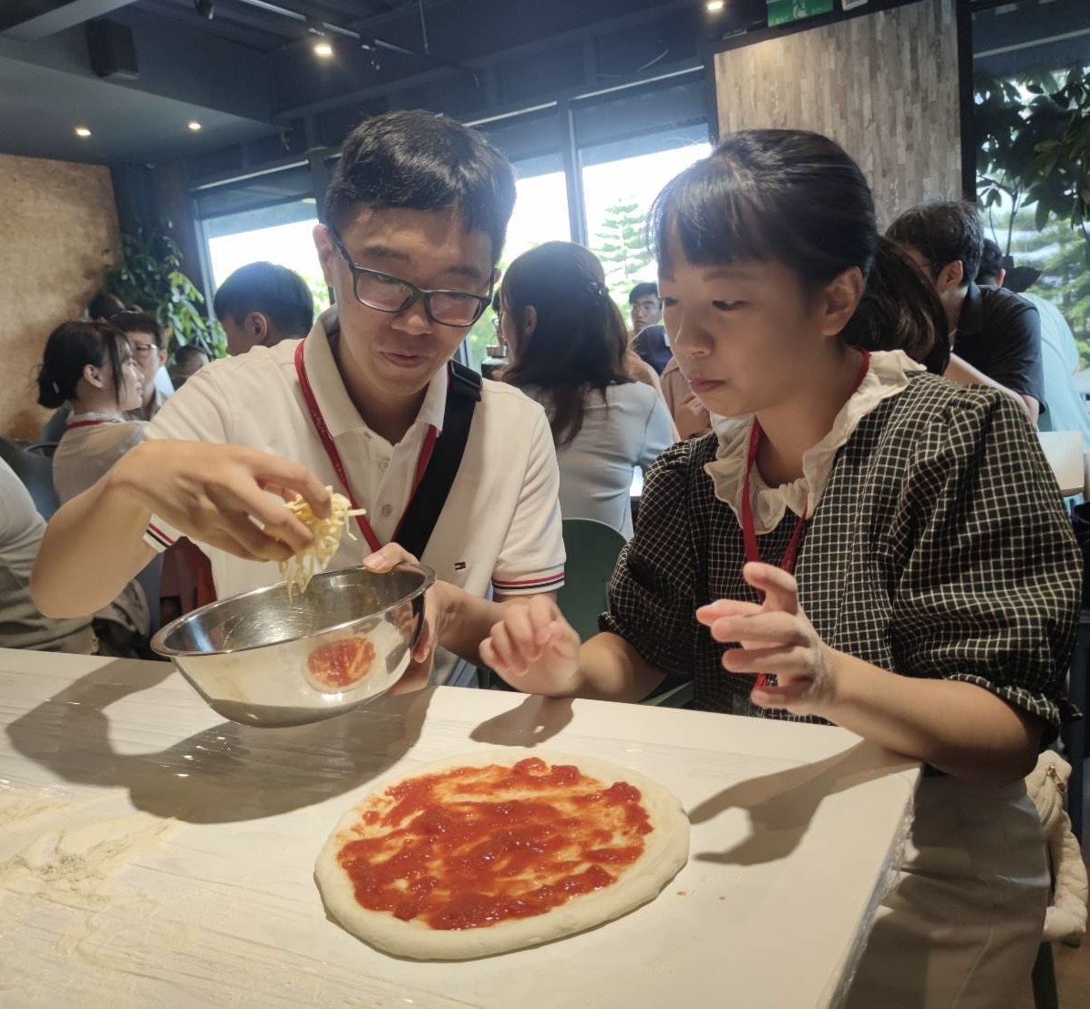 大肚戶所主任江明珠表示,大肚區華南路夜晚因藍色路燈串聯,宛如藍色珍珠項鍊,素有「藍色公路」美名,此次聯誼活動特別選在藍色公路上的「用上自然膳食堂」舉行,該場地由一對退休教師夫妻精心打造,擁有大片草地與花園造景,氛圍清幽浪漫。活動中,型男靚女們化身披薩大師,體驗龍眼木窯烤創意披薩製作,在合作與分享中拉近彼此距離;隨後享用浪漫午餐,再投入美食微型景觀模型的手作體驗,在療癒有趣的創作過程中,度過浪漫又知性的美好時光。