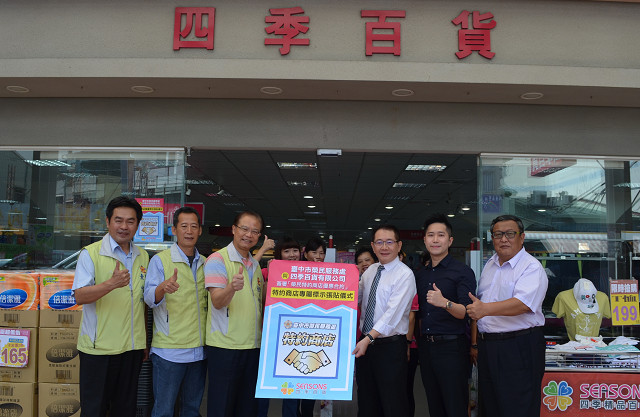 榮服處為擴大宣傳聯合簽約優惠措施效益,更邀請本次簽約業界知名商家舉行共同張貼榮民特約商店標示活動,獲得四季精品百貨有限公司董事長韋乃宏、裕芳食品董事長楊家芳、波士頓烘焙坊總經理何明鴻同聲大表支持,尤其四季精品百貨有限公司還特別製作活動海報一起共襄盛舉。