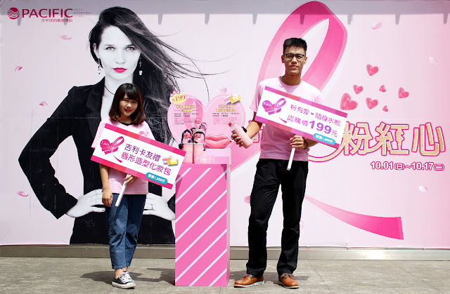 太百首先將於10月1日開始販售「粉有愛-隨身水瓶」,愛心認購價199元,每賣一份即代捐100元給財團法人臺灣癌症臨床研究發展基金會,做為癌症防治研究用,水瓶內附10月14日慈善晚會邀請函、摸彩券及華歌爾內衣折價券以回饋響應民眾;同時太平洋百貨許多館內廠商也傾力響應此公益活動,推出「粉紅優-買1送1」,只要購買貼有活動貼紙商品,即可享買1送1優惠!售出的每個品項還會捐出10元協助癌症臨床研究,讓愛心效益加乘、美麗加倍。