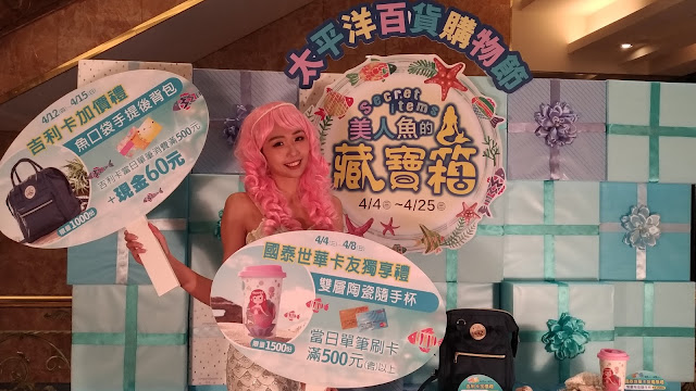 太平洋百貨表示,首5日4月4日(三)至4月8日(日)國泰世華聯名卡單筆刷卡滿500贈送「美人魚~雙層陶瓷隨手杯」,以及4月12日(四)至4月15日(日)吉利卡單筆消費滿300再加60元換購「美人魚~魚口袋手提後背包」,專屬您的美人魚贈品和購划算的超多優惠,就在豐原太平洋百貨。(記者于郁金攝)