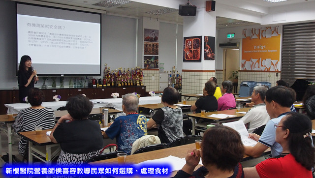 主持活動的林美芳助理教授說,本活動為執行教育部教學卓越延續計畫之一,希望藉由嘉藥豐富的教學資源,向一般民眾推廣衛生安全與健康飲食。活動安排臺南新樓醫院社區健康中心侯喜容營養師主講「如何選購健康安全食材」,並教導民眾處理食材的正確方法,讓食物保留更多營養素,也避免食用風險。