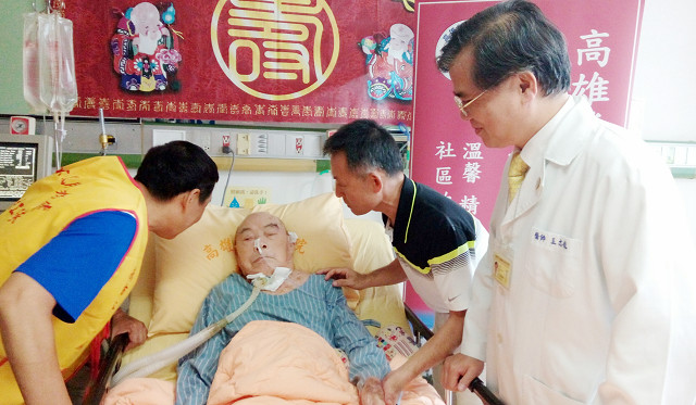 「祝您生日快樂,祝您生日快樂…」一句句生日快樂歌,突然湧進平日寂靜高榮南院呼吸照護病房,吸引病房內每個病人,個個睜開眼睛,或眨眼、或舞動著手腳,無法言語的龔金發爺爺,但見淚流兩行,場面溫馨感人!