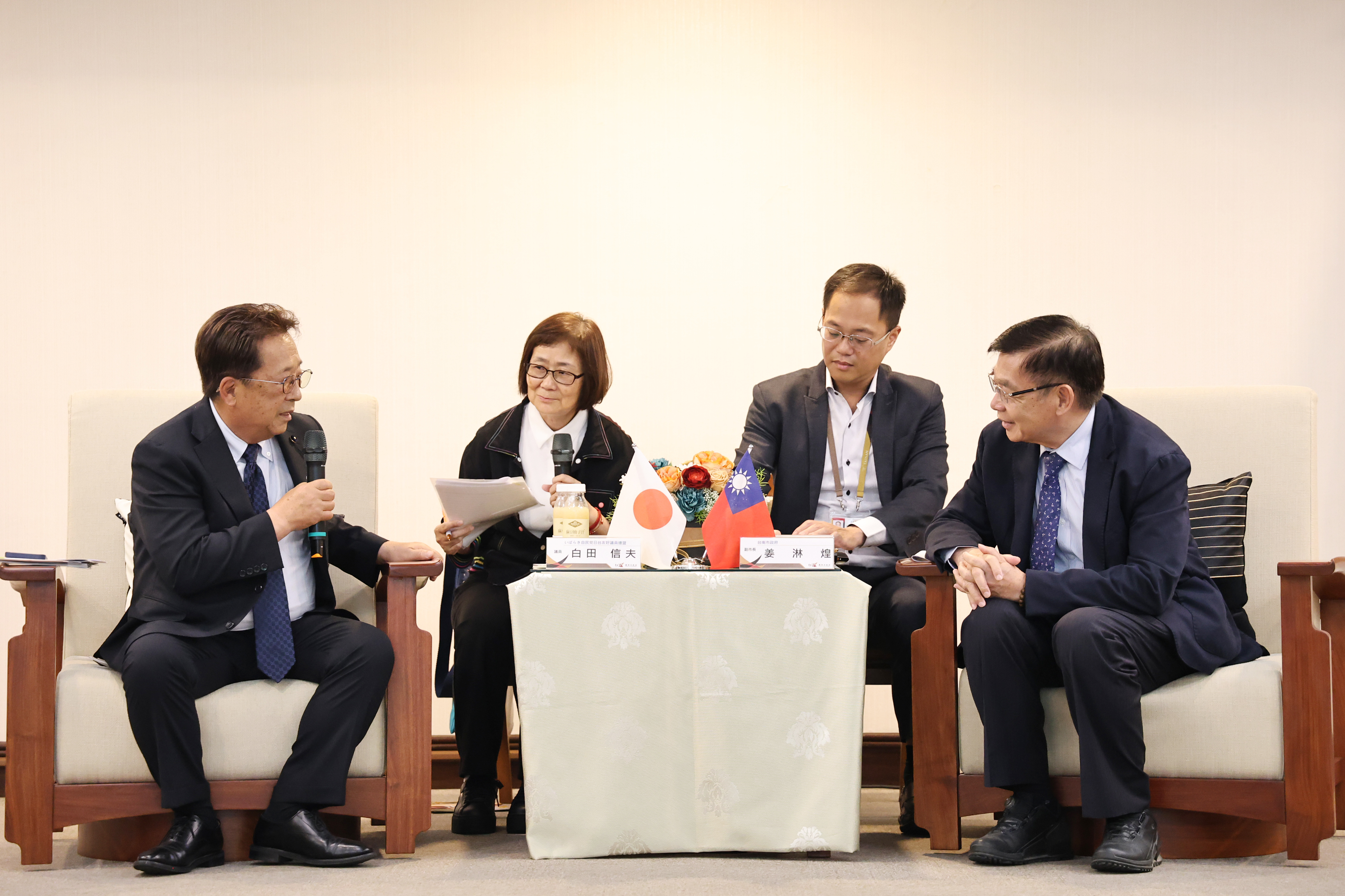 團長白田信夫議員表示,感謝市府在百忙之中給予訪團熱情接待,並表示20年前即開始與台灣交流,對台灣懷有深厚情感。他也特別指出,茨城縣議會多數議員皆加入「日台友好議員聯盟」,縣議會也長期支持台灣參與國際組織。白田議員期盼,未來雙方能在既有友誼基礎上推動更深層次的交流,並促成年輕學子互訪往來,讓台南與茨城縣之間的友誼世代延續。