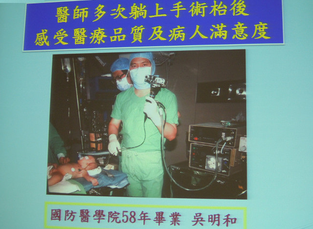 教授吳明和醫師說,當醫師自己變成病人以後,就能感受到病人的難過與痛苦;諸如為何得這種病,該找哪位醫師治療,治療效果如何,有沒有併發症,多久能恢復健康…等等,都是病人最關切的;醫療的推動在於醫病決策共享、術後快速恢復;醫療品質與病人的滿意度來自於診斷、醫療技術、術後照顧、疼痛控制、住院日數、醫療費用及病房照護等等。