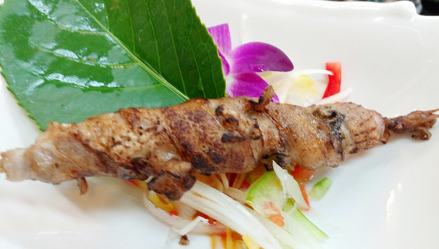 1、弟子規之手捧花:以肉包覆油菜花、空心菜、韭菜花、紅椒的不鬆脫食材,吃的手捧花迎賓,立刻吸引了眾人目光,1口5吃,表徵原住民、新住民、閩南人、客家人等多元的族群融合。