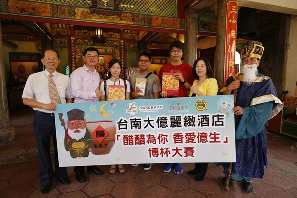 為歡慶愛情七夕嘉年華活動開跑,7月13日在重慶寺舉辦「醋醋為你 香愛億生」博杯大賽,第1名由擲得8個聖杯臺南邱小姐獲得「豪華客房」住宿券乙張(價值13,200元),第2名鄭小姐獲「醋醋為你~甜蜜雙人下午茶套餐」乙份,第3名至第6名獲香腸博物館「泰式檸檬肉乾」,7到20名獲得大億麗緻酒店提供「義大利艾格尼沐浴用品組」及餐廳「88折優惠券」。