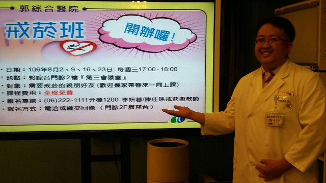 南市郭綜合醫院去年榮獲「無菸醫院」金獎,是臺南市首間獲此殊榮的醫院外,還獲得WHO健康促進國際網絡「健康促進醫院」與「高齡友善健康照護機構」2項認證,分別在國健署首度整合健康促進醫院、高齡友善健康照護機構與無菸醫院共同舉行「2016健康促進與照護機構國際研討會」受獎及授證。郭綜合醫院指出,預計106年8月份開辦民眾戒菸班,歡迎有意願想戒菸的臺南市民共同參與。