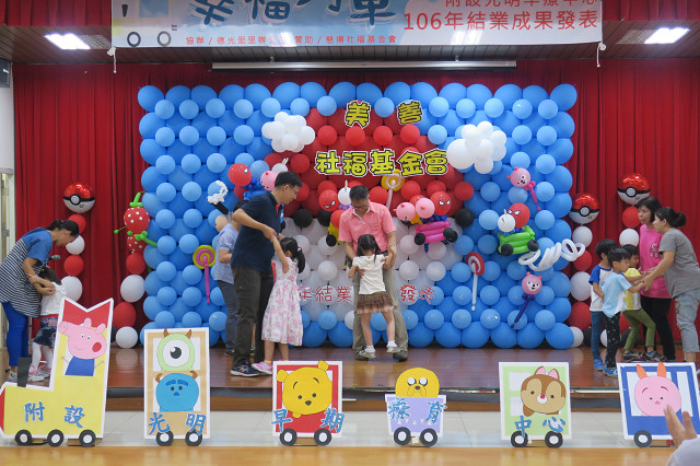 【記者于郁金/臺南報導】0至6歲是接受療育的黃金期,特別是3歲之前接受1年的療育,勝過3歲之後才接受療育的10年成績;而且所負擔成本,黃金期的花費是日後的十分之一代價!美善基金會附設光明早期療育中心7月29日上午,於德光里活動中心為32位小小慢飛天使辦理「幸福列車」結業成果發表,小朋友展現出各項表演才藝,有的和爸爸大跳《高山青》、有的以中英文介紹動物、有的唱兒歌組曲…,精采可愛的演出,讓大家眼睛一亮,也驚嘆孩子們的努力與無限可能性。